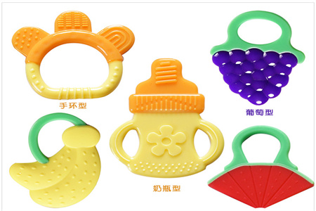 嬰兒牙膠需要經(jīng)常性清洗。硅膠或者橡膠制牙膠會產(chǎn)生靜電,容易吸附灰塵及細(xì)菌,所以需要經(jīng)常性的清洗。許多國外品牌的牙膠因為材質(zhì)的原因,不適合沸水長時間蒸煮消毒,寶媽使用時需注意,以免牙膠老化。注意有些牙膠不宜用沸水、蒸氣、微波爐、洗碗機消毒或清洗,以免損害牙膠。要嚴(yán)格遵守使用說明。硅膠嬰兒牙膠之所以能夠讓嬰幼兒青睞,主要還是因為材質(zhì)吸引力較大,它的外觀制作出成品出來還是屬于比較卡通Q彈的一類材質(zhì),并且在表面上可以進行多元化的表面處理,比如產(chǎn)品表面的紋路以及表面效果可能行曬紋或者反光亮面達(dá)到美觀效果,印刷圖案或者立體圖案效果都可以在工藝上進行設(shè)計,起到吸引嬰幼兒進食欲望。