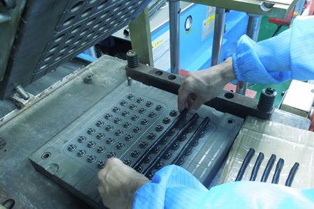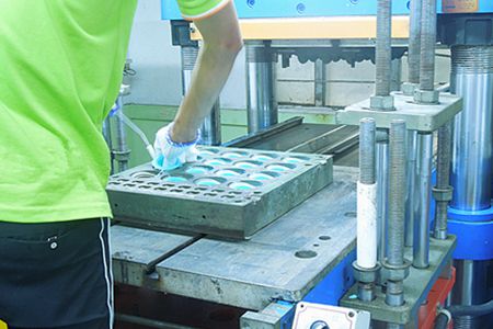 硅橡膠制品成型模具在上油壓模臺(tái)之前先洗模處理,特別是剛剛放電的新模具必須先噴砂處理。噴砂模具必須加熱到足夠的溫度,然后排料成型,并且在成型前必須噴灑脫模劑。帝博提醒,電鍍模具一定不要噴砂,包括樹脂砂噴射。