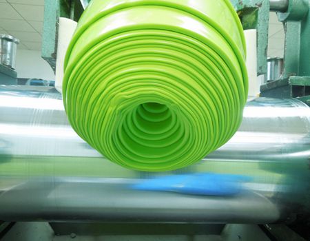用多少的原料和色膠,在準備好膠料以后就可以開始進行混煉膠,在操作煉膠機時首先要調(diào)整好煉膠機的輥距,保持輥距的平衡。若兩端輥距調(diào)節(jié)的大小不一,造成輥筒偏載,極易損壞設(shè)備。由于煉膠過程中必須加入適當(dāng)?shù)牧蚧瘎?,若硫化劑添加掌握不均,就會?dǎo)致膠料燒焦或者起火,所以煉膠過程還是需要技術(shù)含量的。在整個操作過程中來回練壓讓色膠和原料混合成為產(chǎn)品需要的綜合顏色。