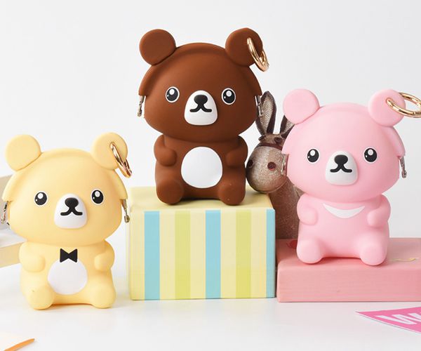 小熊拉鏈掛扣硅膠包,滴膠工藝硅膠錢包