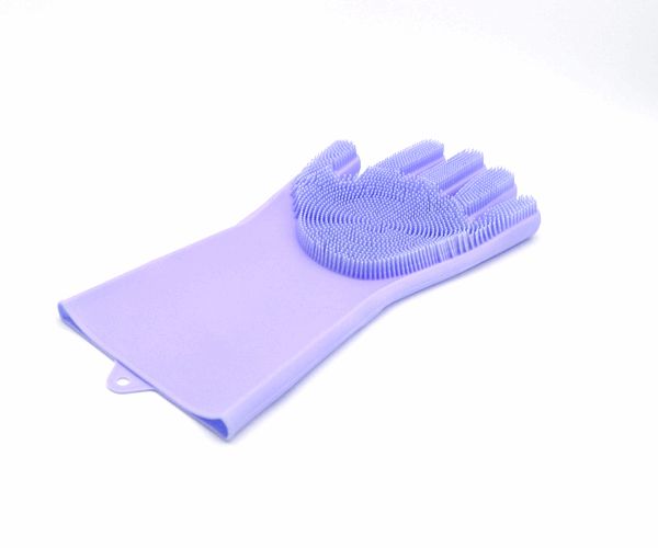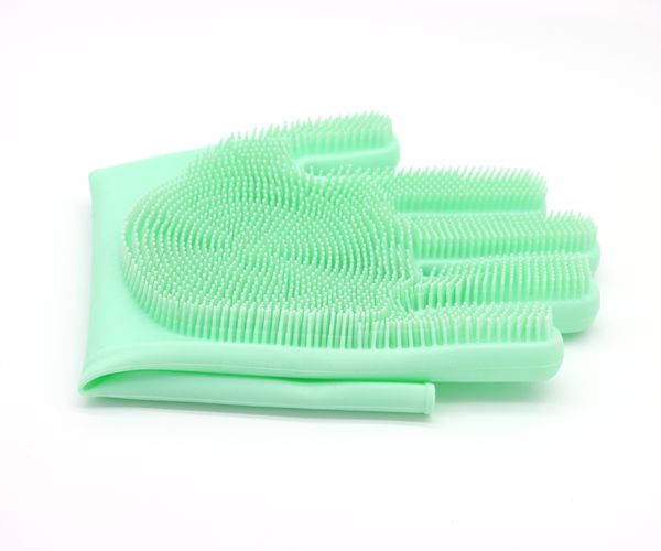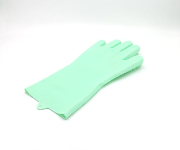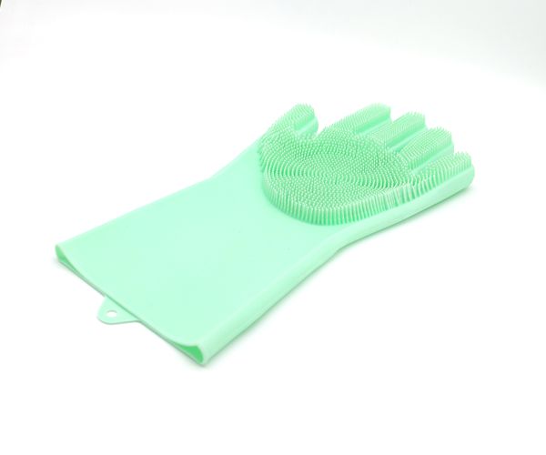 硅膠洗碗手套帶刷毛家務(wù)清潔洗菜手套